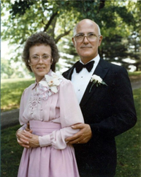 | My wife, Lorraine, and I dressed up for daughter's wedding in 1987. |