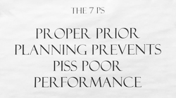 The seven P's; " Prior Proper Planning Prevents Piss Poor Performance."